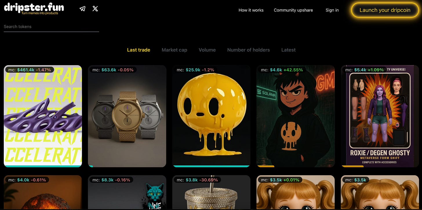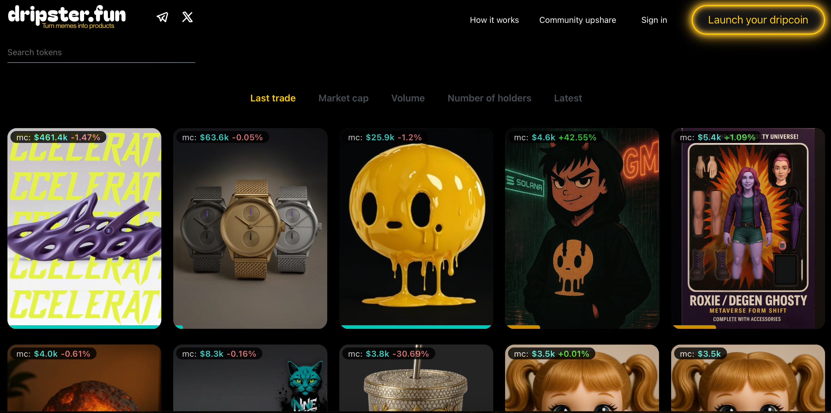 O ecossistema cripto finalmente encontrou o que faltava em sua jornada rumo à dominação mundial: uma forma de transformar JPEGs em produtos físicos através de tokens especulativos. Dripster, a última sensação da rede Solana, promete revolucionar simultaneamente a indústria da moda, o e-commerce e o bom senso. A plataforma permite criar designs usando IA generativa, lançar tokens vinculados aos produtos e – aqui está a mágica – receber itens físicos quando marcos específicos de capitalização forem atingidos.