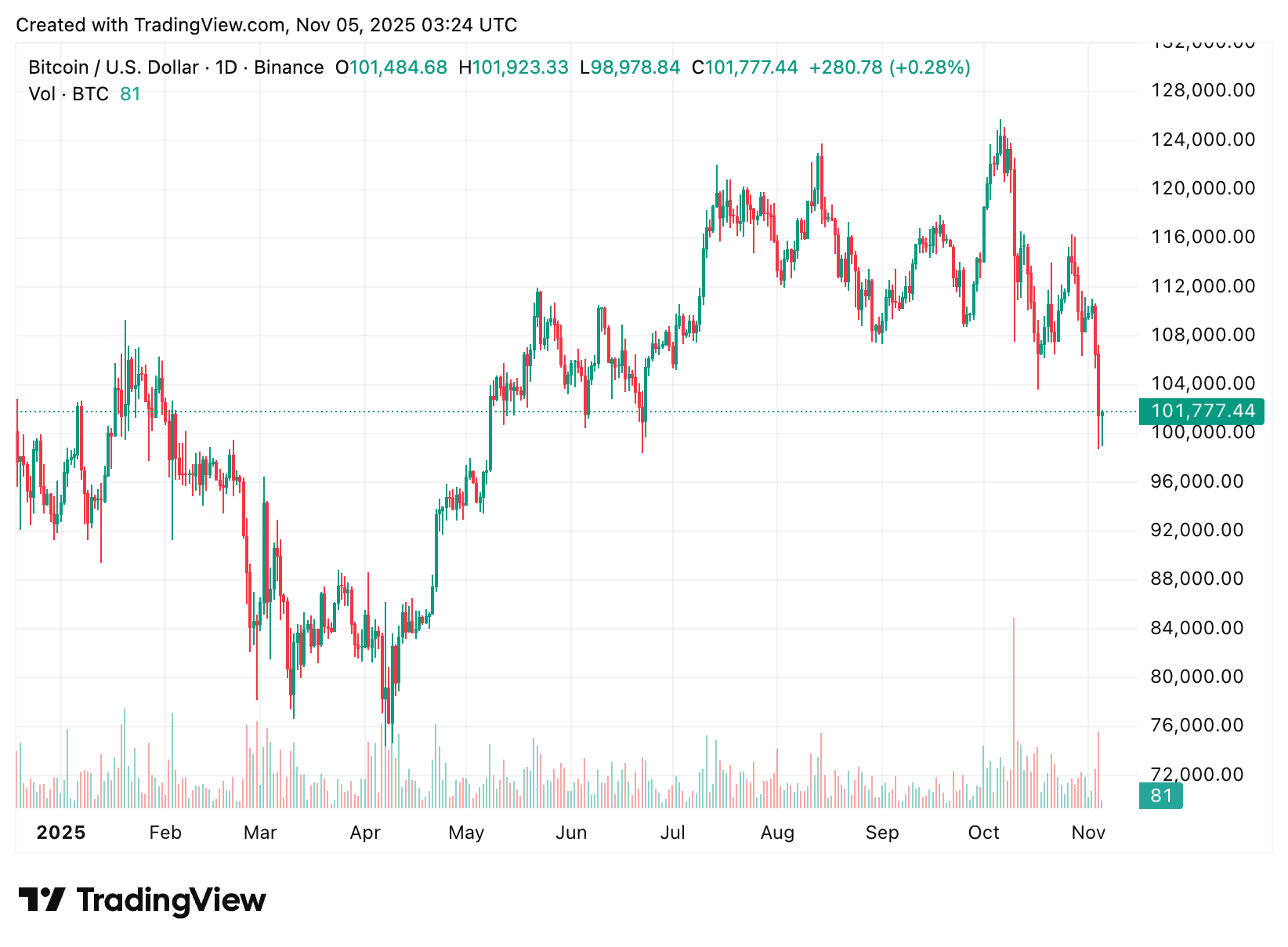 Fechamento diário do BTC