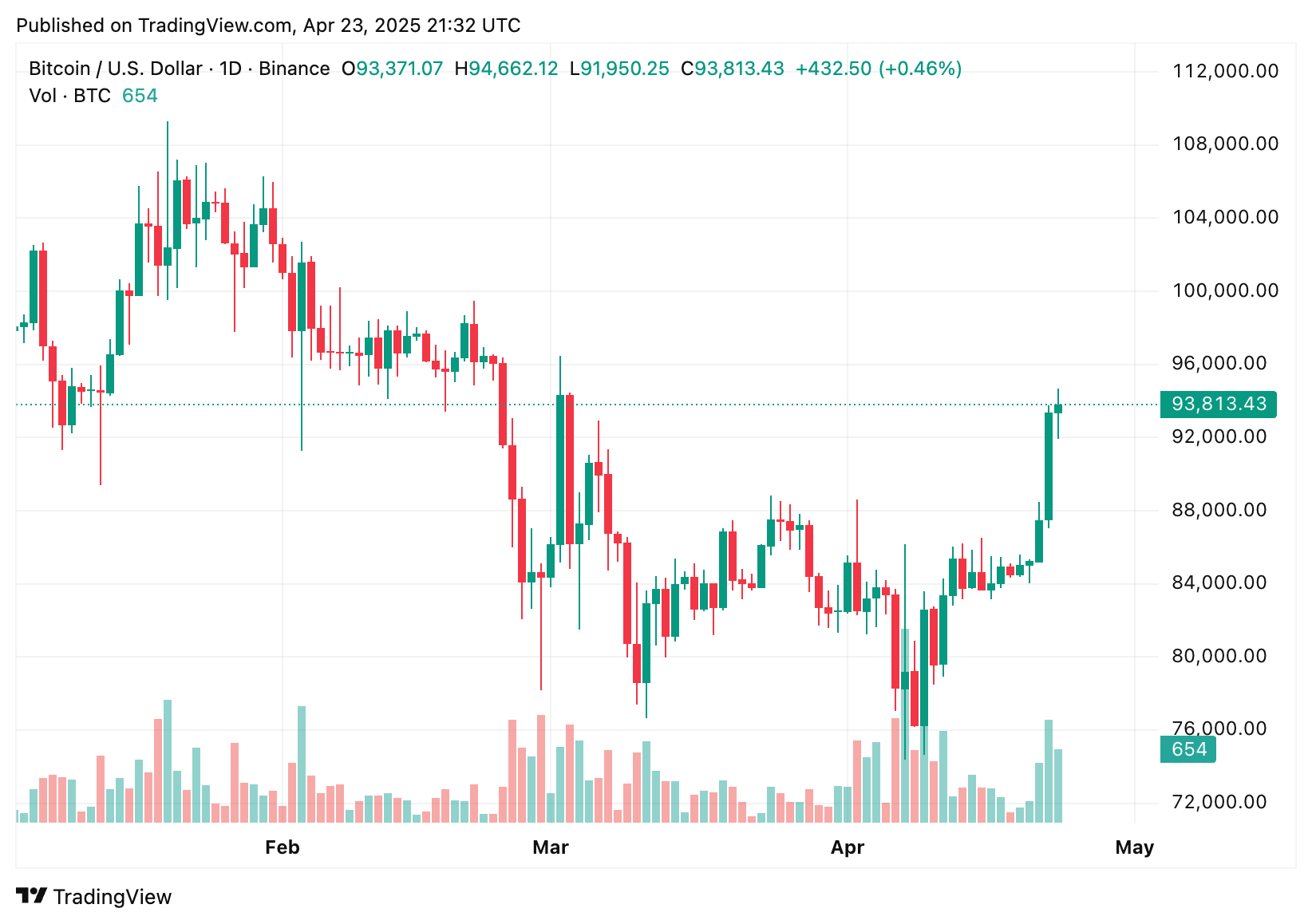 ETFs de Bitcoin registram R$ 5,3 bilhões em um dia e sinalizam retomada do mercado cripto. Os ETFs de Bitcoin nos EUA tiveram um forte impulso, com entradas líquidas de US$ 936 milhões (R$ 5,3 bilhões), o maior volume diário desde 17 de janeiro. O movimento foi liderado pelos ETFs da Ark & 21 Shares (US$ 267 mi), Fidelity (US$ 253 mi) e BlackRock (US$ 193 mi), reforçando a narrativa do Bitcoin como um porto seguro em meio às incertezas econômicas. (Portal do Bitcoin)