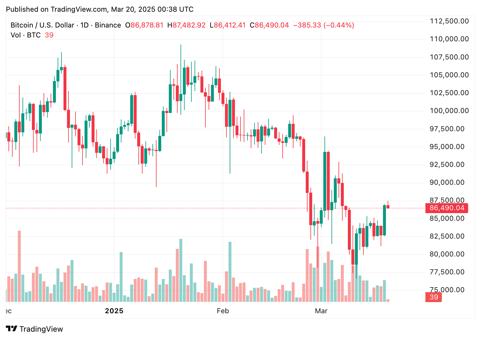 A taxa de juros dos EUA foi mantida. A decisão foi anunciada pelo Federal Reserve, Banco Central dos Estados Unidos, ontem. Isso impactou os mercados globais e impulsionou o Bitcoin, que atingiu US$ 85.693, em uma alta de 4,3% nas últimas 24 horas, segundo o CoinMarketCap. Embora a decisão já fosse esperada, o discurso do presidente do Fed, Jerome Powell, trouxe alívio ao mercado, que enfrenta temores de recessão e os efeitos das tarifas de Trump. Desde o início do dia, o Bitcoin e outras criptomoedas já vinham em forte valorização. (Exame)