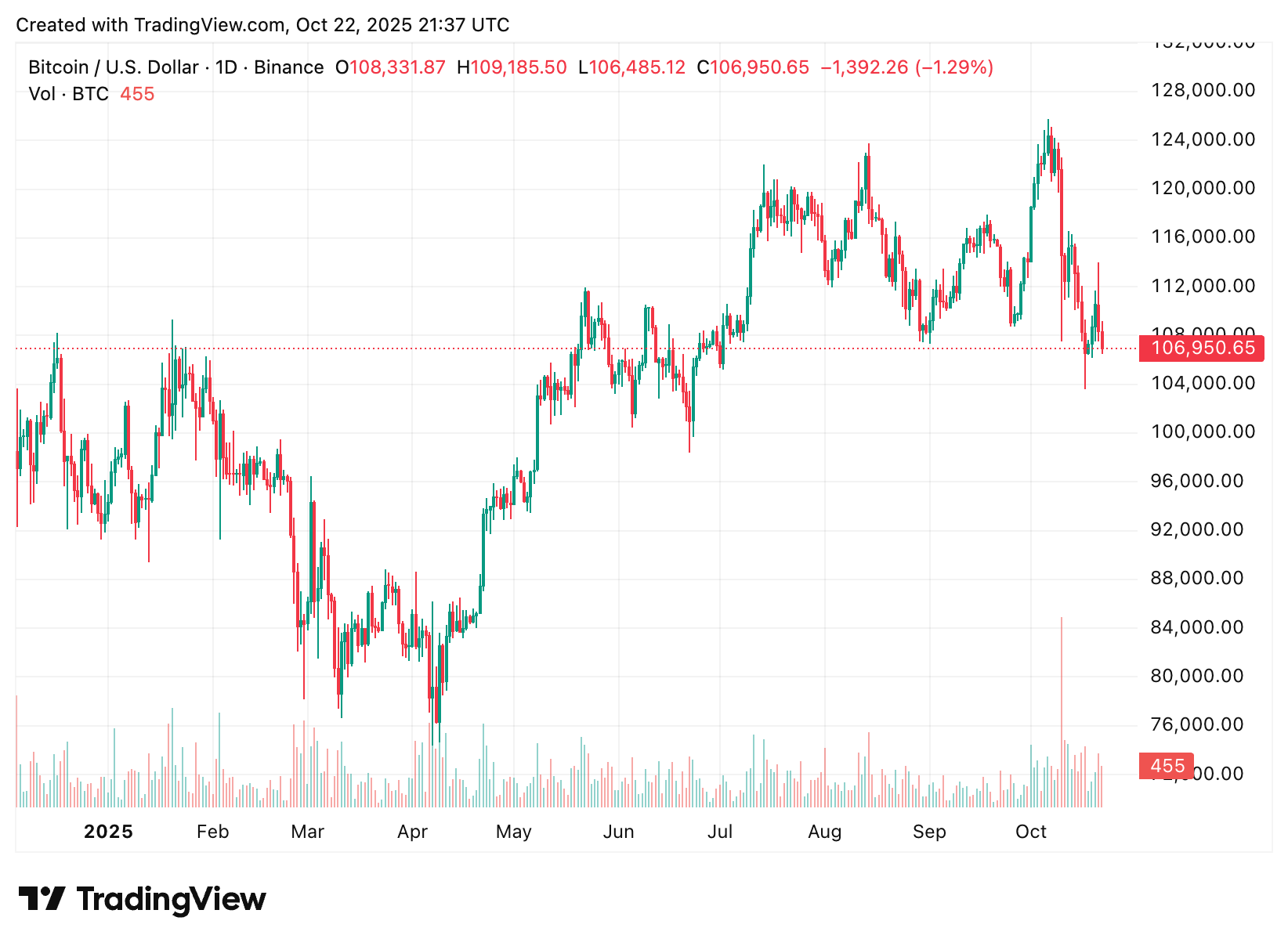 A Standard Chartered diz que o BTC deve cair para US$ 100 mil antes de retomar o ‘Uptober’. Segundo o banco, à medida que os investidores reagem aos acontecimentos entre os EUA e a China em relação a tarifas e comércio, o preço do Bitcoin provavelmente cairá abaixo de US$ 100 mil antes de atingir novas máximas históricas. (Portal do Bitcoin)