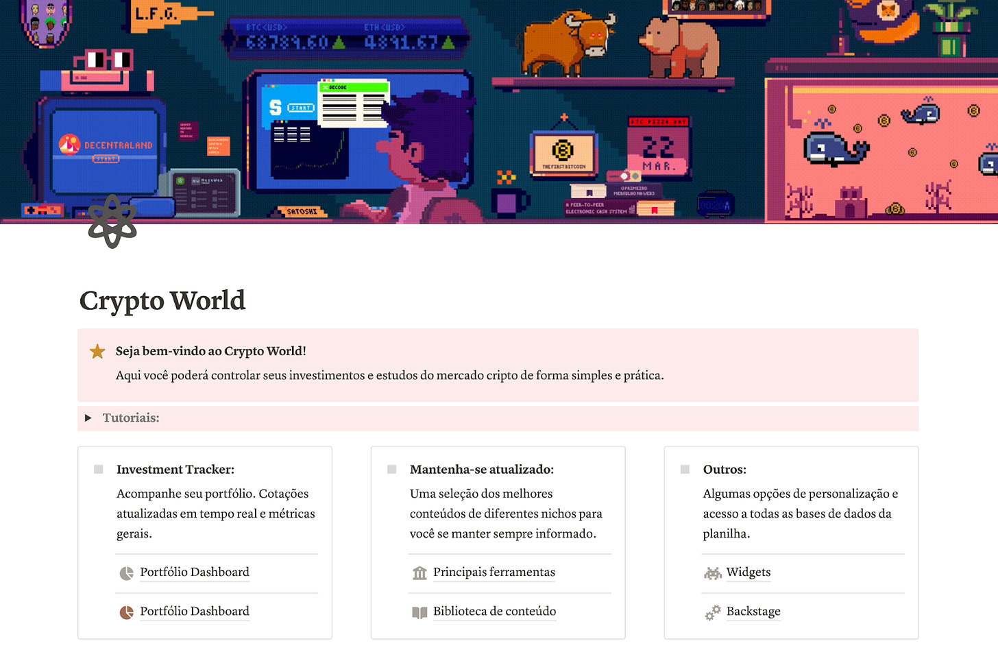 O Crypto World é uma planilha personalizável e automatizada em que o investidor encontra todas as ferramentas necessárias para dominar o mercado