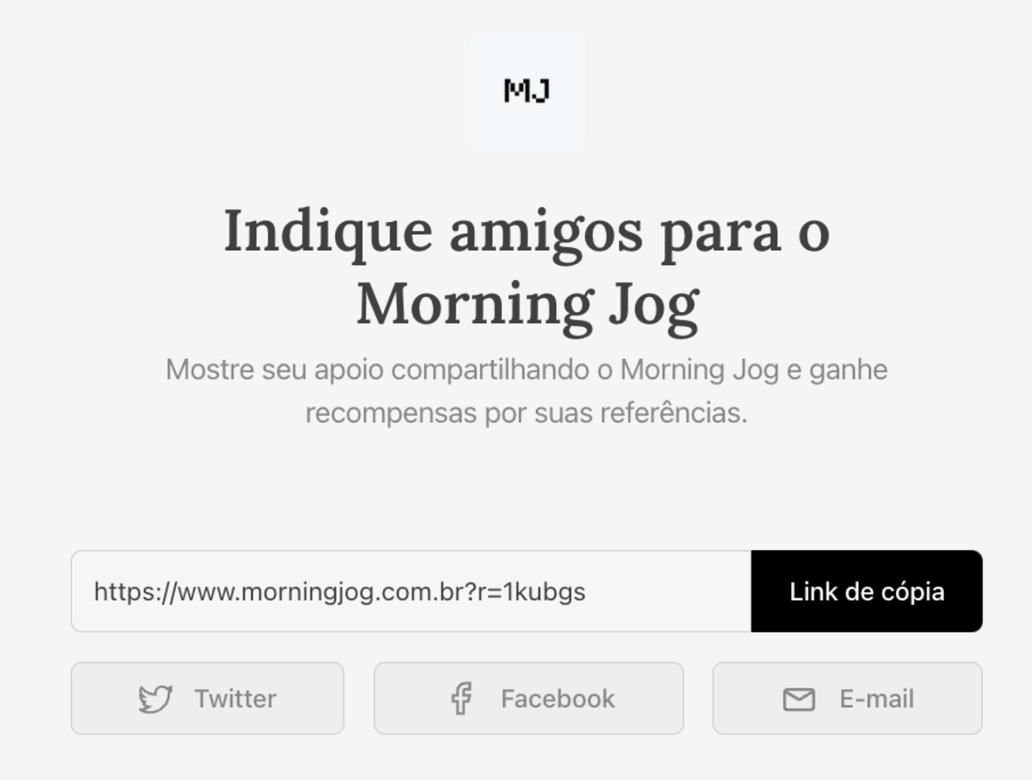 Quando você compartilha seu link nas redes sociais, em grupos do Whatsapp ou diretamente para os seus amigos e algum deles se inscreve na Morning Jog, essa inscrição é registrada no ranking geral e contabilizada na sua pontuação.
