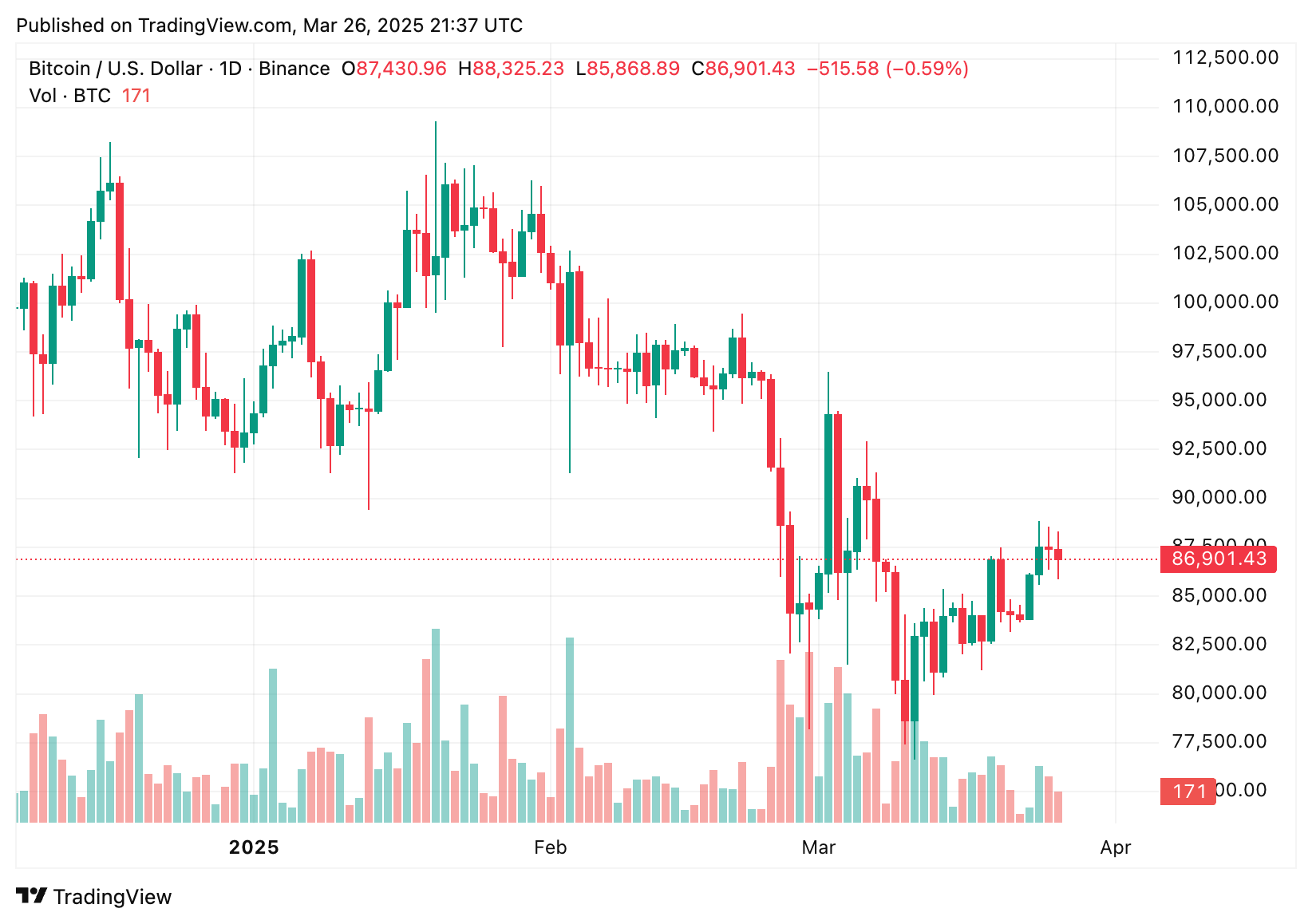 Fechamento diário do BTC