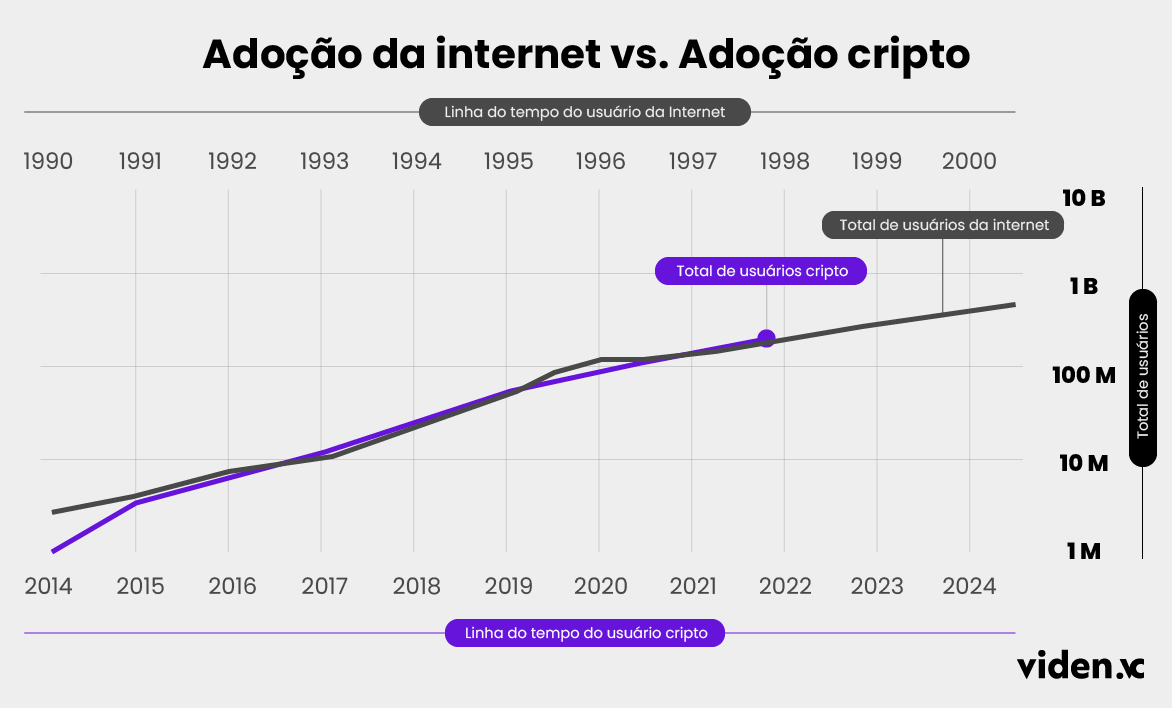 A adoção de criptoativos atual se assemelha a da internet nos anos 90
