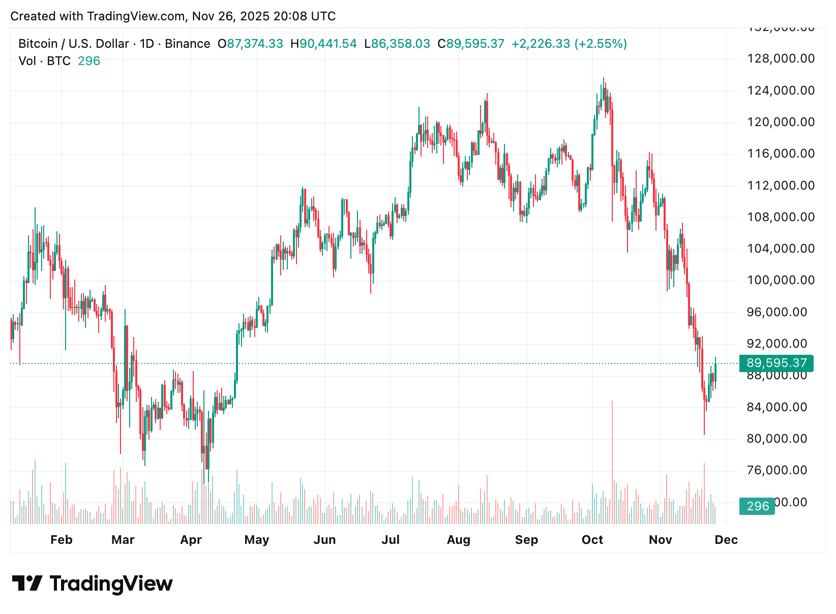 Fechamento diário do BTC