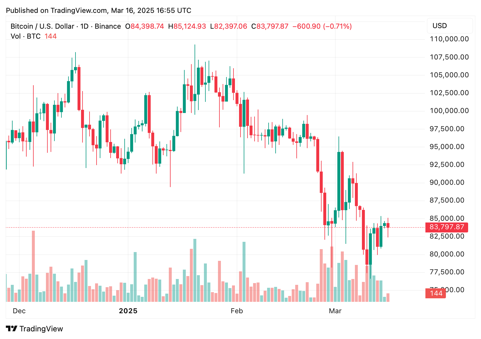 Fechamento diário do BTC