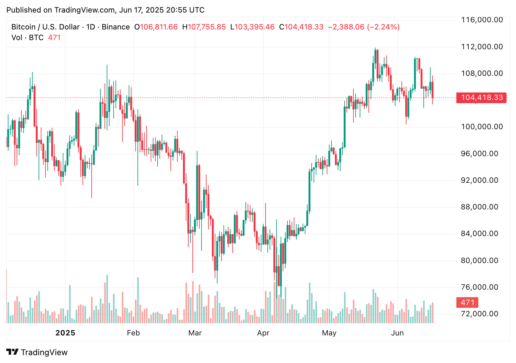 Fechamento diário do BTC