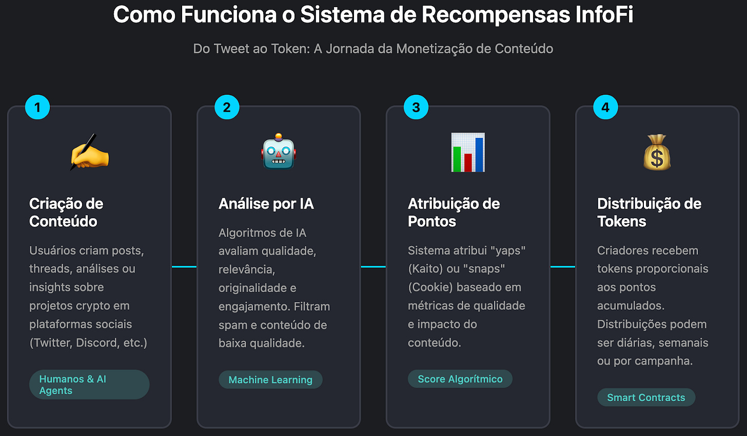 A premissa fundamental do InfoFi reconhece que, numa era onde a IA pode gerar conteúdo infinito, a verdadeira escassez não está na informação em si, mas na capacidade de filtrar sinais genuínos em meio ao ruído ensurdecedor. Com a produção de conteúdo se tornando cada vez mais barata, a atenção humana qualificada emerge como o ativo mais valioso e o InfoFi quer precificá-la.