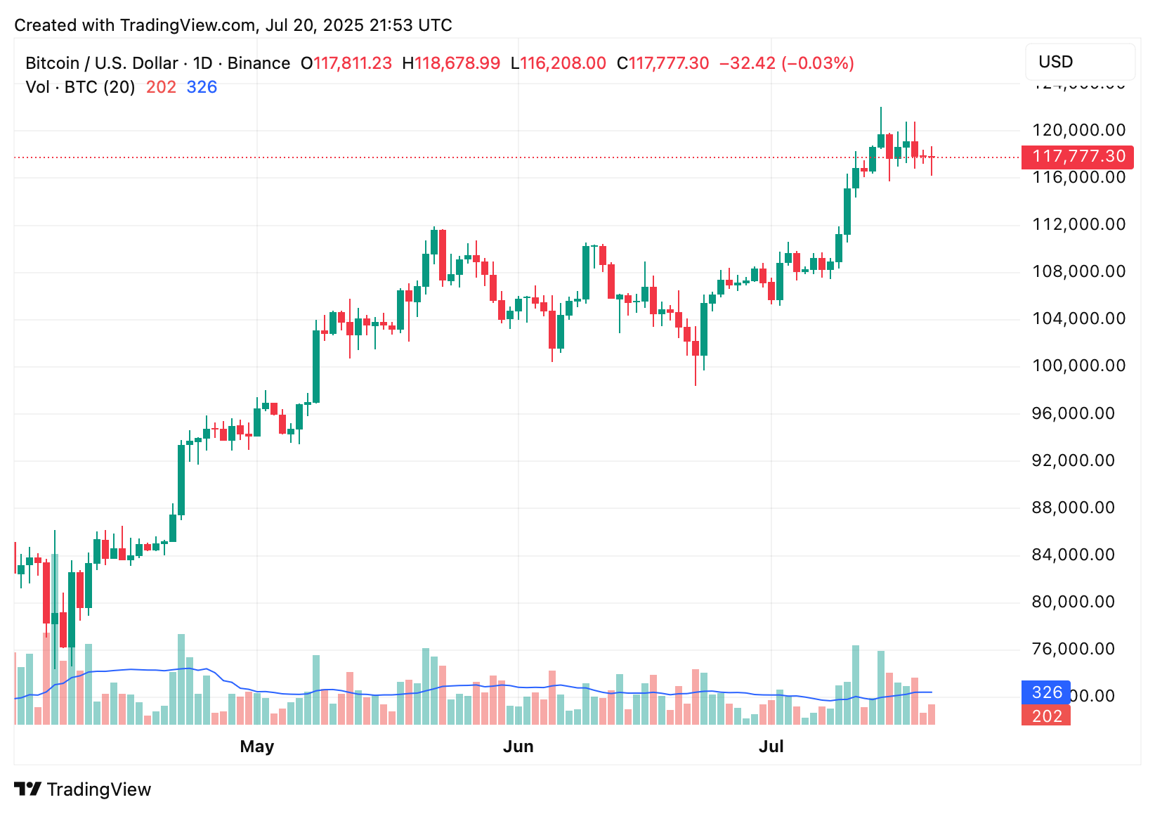 Fechamento diário do BTC