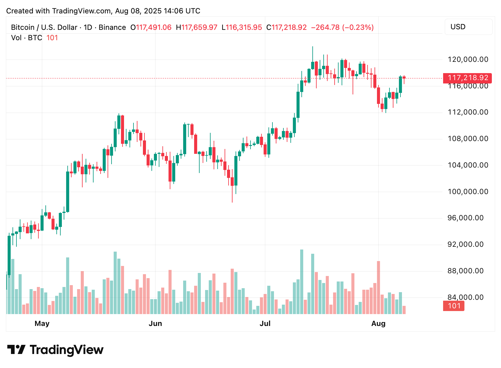 Fechamento diário do BTC