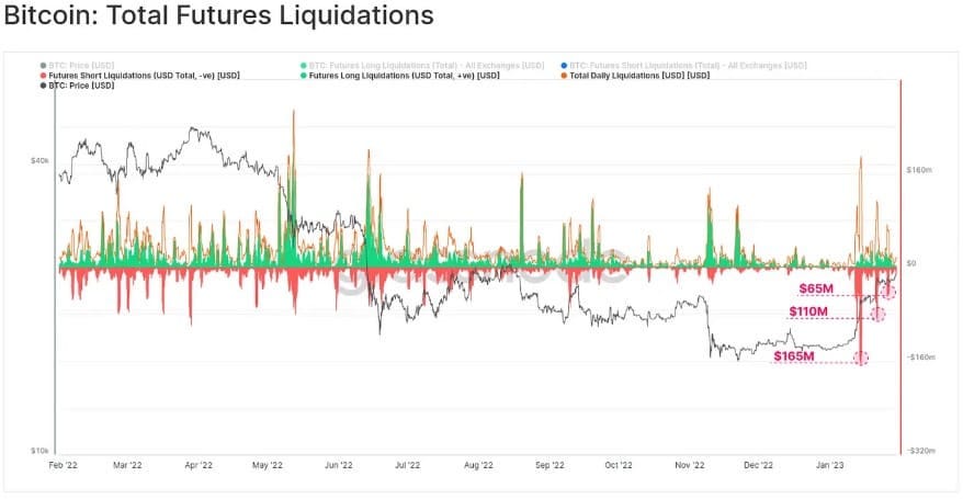 Em janeiro de 2023 o Bitcoin apresentou o desempenho de preço mensal mais forte desde outubro de 2021, alimentado pela correção da forte queda de novembro do ano passado e da sequência de short squeezes. Este rali de alta trouxe uma grande parte do mercado de volta ao lucro, corroborando com o sentimento otimista demonstrado pelo índice do medo e da ganância.