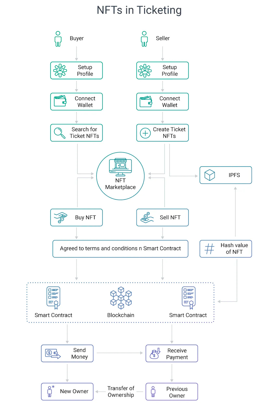 O uso de NFTs através de uma tecnologia blockchain pode trazer muito mais transparência às vendas, por ser possível provar a autenticidade de um ingresso (identificar o agente emissor e a data), além da rastreabilidade (por quais pessoas ele passou e quanto elas pagaram), além de permitir uma programabilidade (possibilidade do emissor receber royalties por cada revenda feita, por exemplo).
