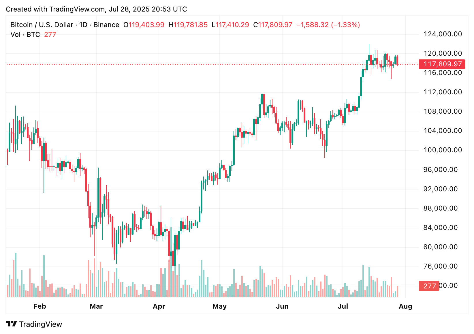 Fechamento diário do BTC