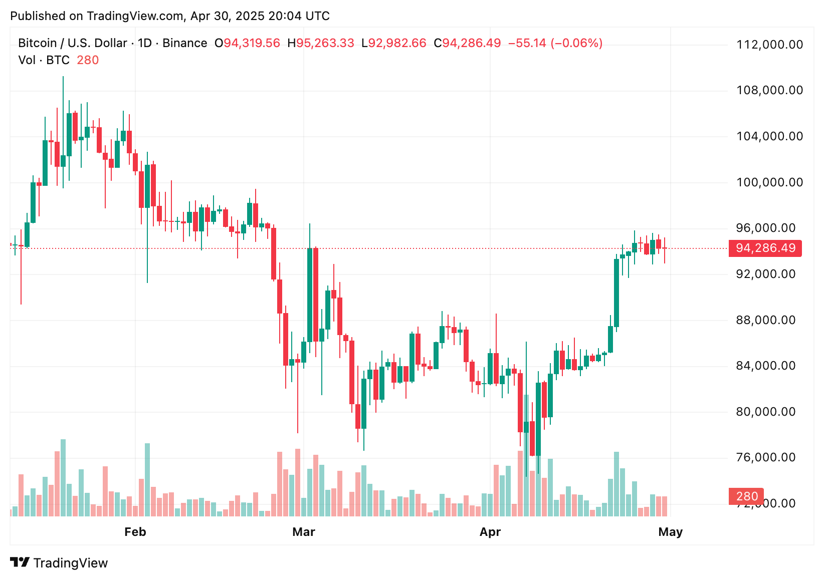 Bitcoin cai abaixo de US$ 94 mil após PIB dos EUA surpreender negativamente. O BTC recuou até US$ 93.883, após o PIB dos EUA registrar contração de 0,3% no primeiro trimestre, o que foi abaixo da expectativa de crescimento, que eram de 0,4%. O dado frustrou o mercado e pressionou também as bolsas do mercado financeiro tradicional, com quedas de até 2,4% nos principais índices. As altcoins também sofreram impacto. O ETH recuou 3,2%, a XRP caiu 5,3% e a SOL perdeu 3,8%. Apesar do cenário de incerteza, segundo alguns analistas, o Bitcoin continua sendo visto como reserva alternativa de valor e proteção. (Valor Econômico)