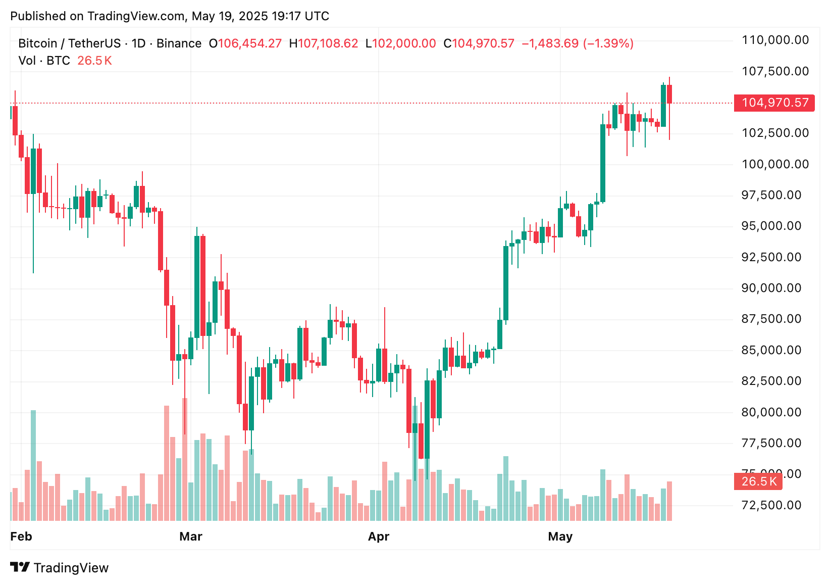 Fechamento diário do BTC