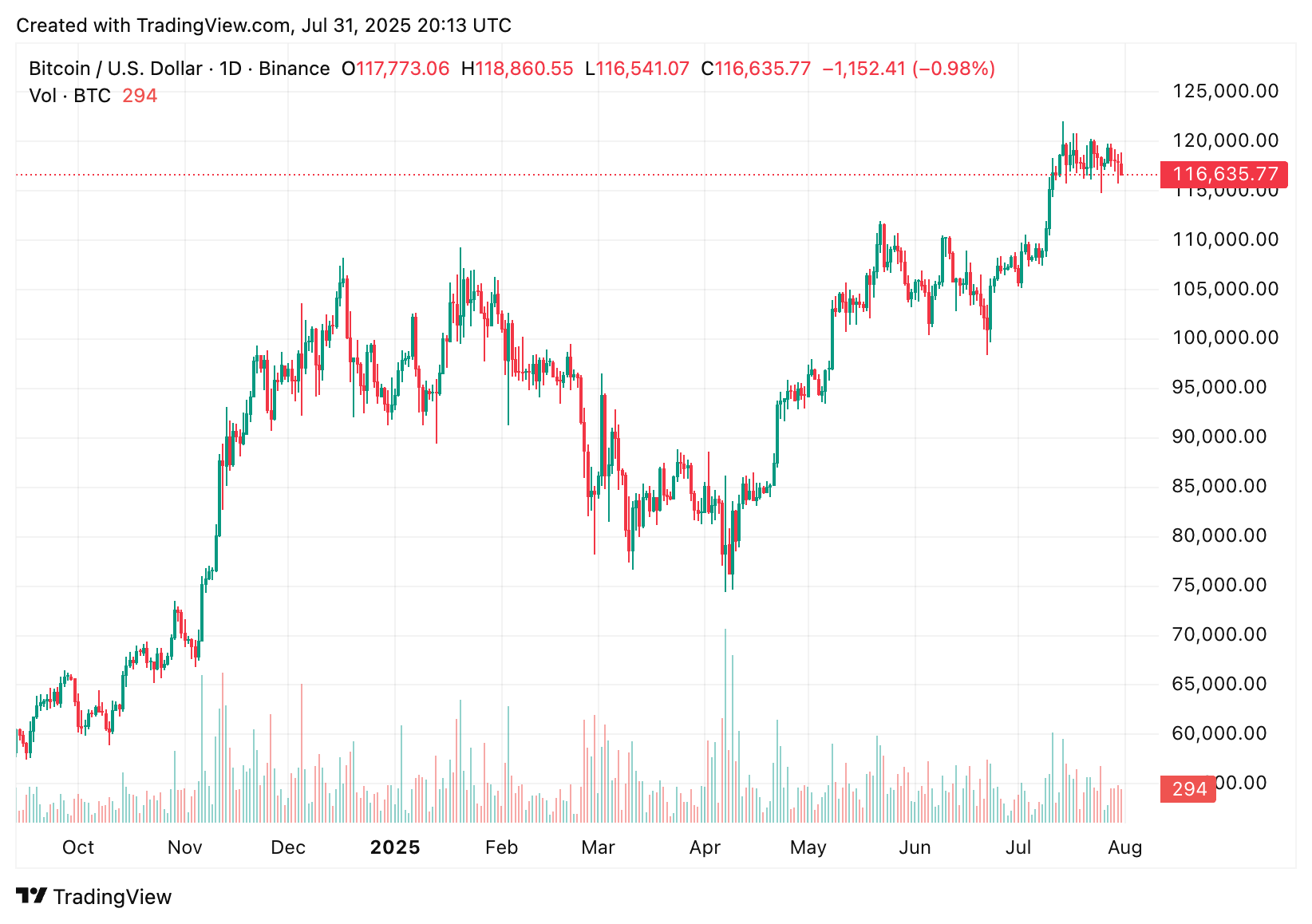 Fechamento diário do BTC